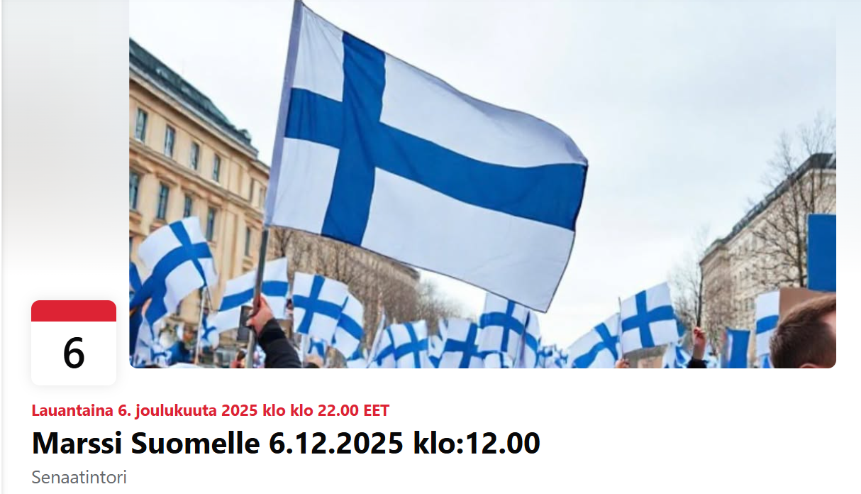 Päivitettyä tietoa marssista ja tapahtuman sisältöä koskien annetaan lähempänä tapahtuman ajankohtaa.